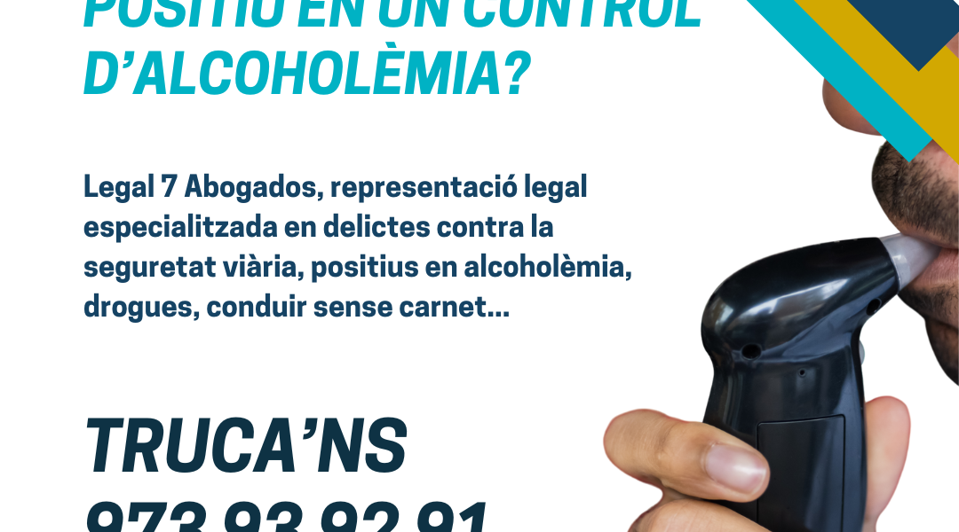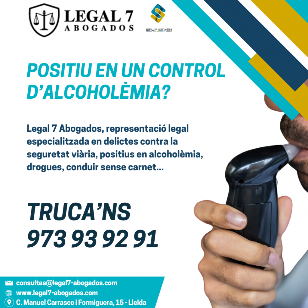 Si has donat positiu en alcohol o drogues al volant, no dubtis a trucar-nos. Tothom té dret a una correcta representació legal, i a Legal 7 som aquí per ajudar-te.