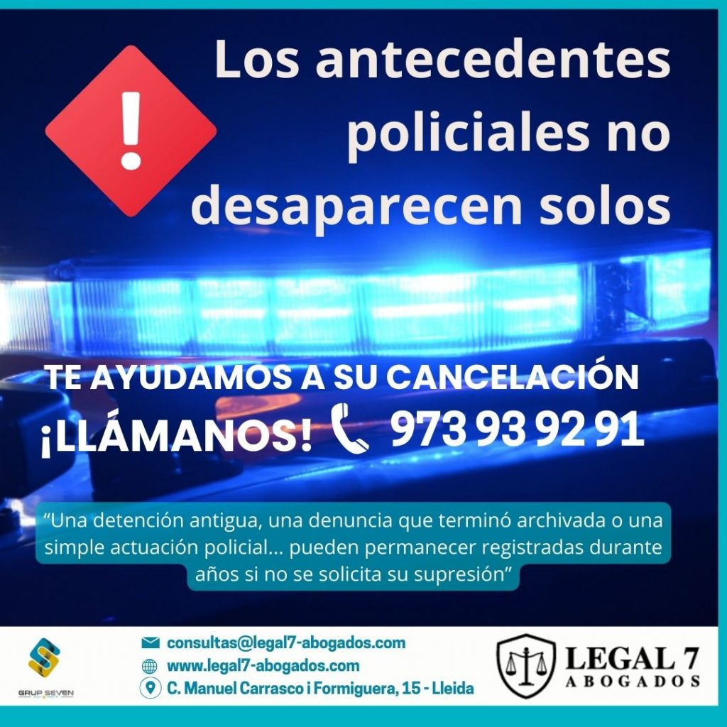 Legal 7, despacho de abogados Lleida especializado en la cancelación de antecedentes policiales. Te explicamos cómo eliminar detenciones registradas y evitar problemas en extranjería o nacionalidad y proteger tu futuro legal