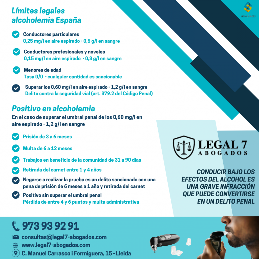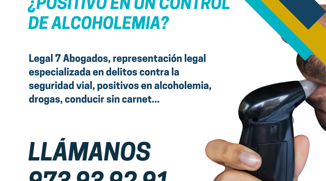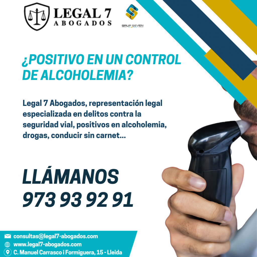 Si has dado positivo en alcohol o drogas al volante, no dudes en llamarnos. Todo el mundo tiene derecho a una correcta representación legal, y en Legal 7 estamos aquí para ayudarte.