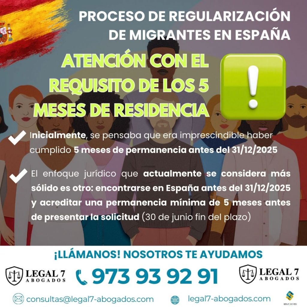 Esto supone una diferencia muy relevante. Los cinco meses no deben haberse cumplido antes del 31 de diciembre de 2025, sino antes del momento en que se presente la solicitud dentro del plazo habilitado. En la práctica, esto amplía el margen para muchas personas que inicialmente pensaban que no podrían acogerse a la regularización.